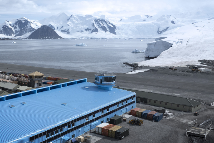 The British Antarctic Survey's new hub at Rothera Research Station, designed by Hugh Broughton Architects